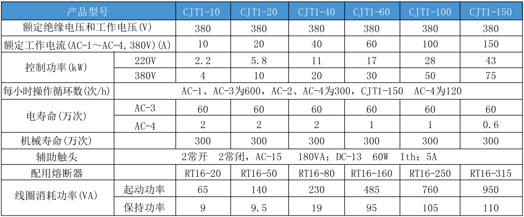 CJT1系列交流接觸器(以下簡稱接觸器),主要用于交流50Hz(或60Hz),在AC-3使用類別中額定工作電壓380V時,額定工作電流至150A的電力線路中,供遠距離接通和分斷之用,并可與適當的熱繼電器組成電磁起動器,以保護可能發生操作過負荷的電路。同時也是CJ10系列接觸器的替代產品。