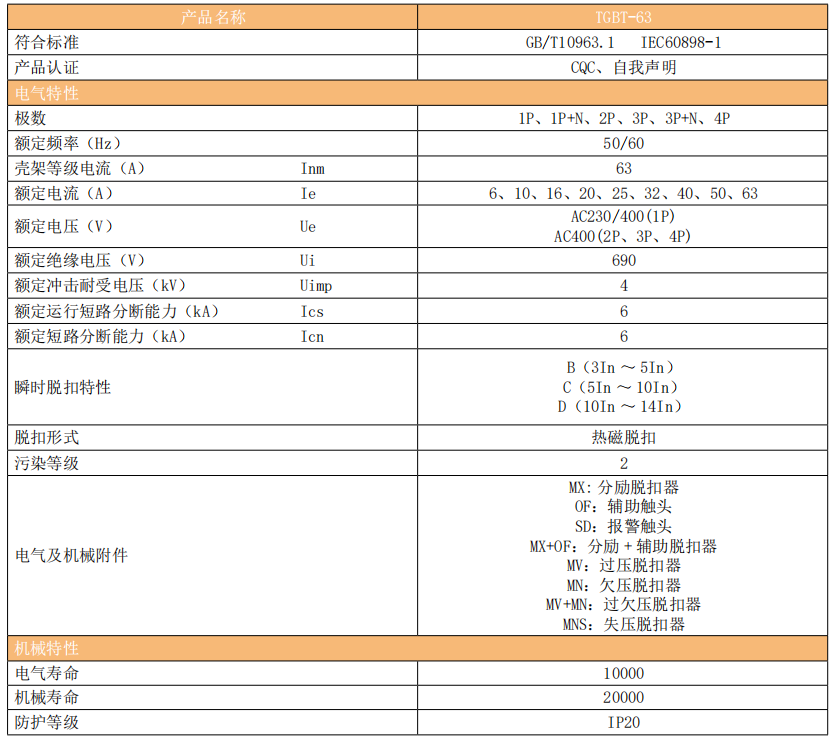 TGB1N-63 小型斷路器(以下簡稱斷路器)主要適用于交流 50/60Hz,額定電壓 230V/400V,額定電流至 ...