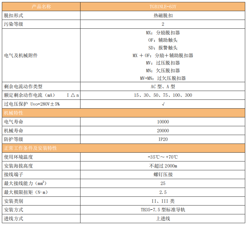 TGB1NLE-63Y 系列剩余電流動作斷路器(以下簡稱漏電斷路器)主要適用于交流 50Hz,額定工作電壓 230V/400V,額定電流至 63A的線路中,當(dāng)人身觸電或電網(wǎng)泄露電流超過規(guī)定值時。剩余電流動作斷路器能在極短的時間內(nèi)迅速切斷電源,保護人身及用電設(shè)備的安全,并且有過載、短路、