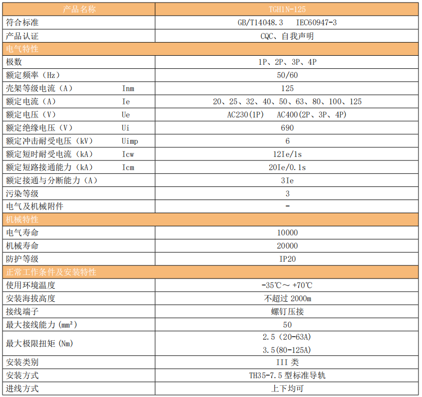TGH1N-125 隔離開關主要適用于交流 50/60Hz,單極 230V,二、三、四極 400V,額定電流至125A 的控制和配電回路中,主要作為終端組合電器中的總開關,也可用于不頻繁控制各類小功率電器和照明,廣泛應用于工礦企業、高層建筑、商業及家庭等場所。